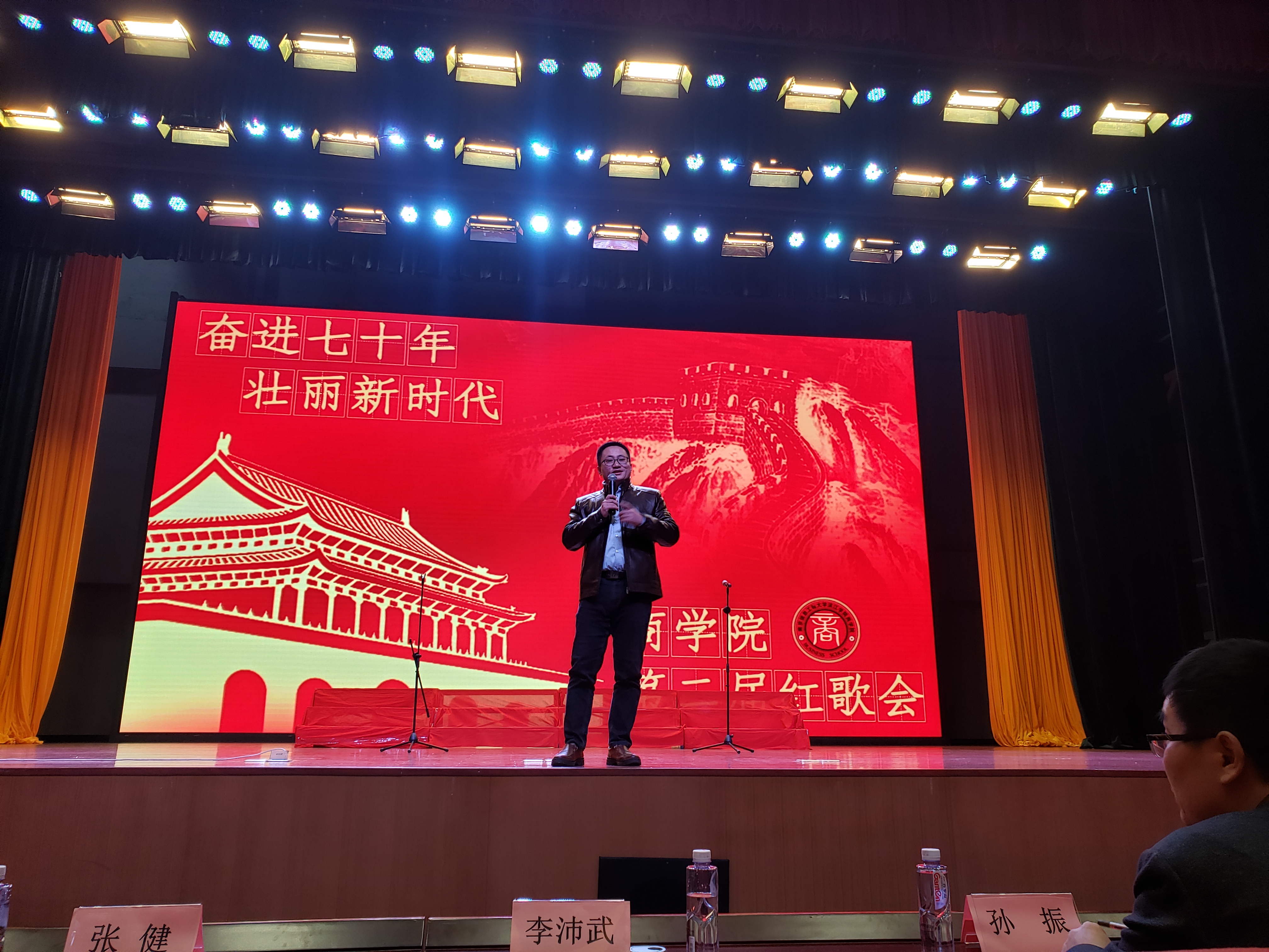为弘扬红色文化经典,坚定师生不忘初心跟党走的信念,商学院12月1日上午在滨江大礼堂二楼举办“奋进七十年 壮丽新时代”第二届红歌会。财务处处长、商学院党总支书记孙振,学工处副处长李沛武出席了本次活动。辅导员老师与商学院全体新生一同参与了本次比赛。