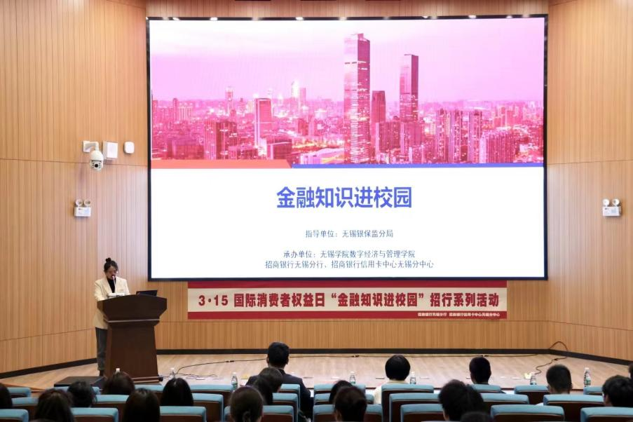 为了帮助在校学生进一步适应数字时代,引导在校学生增强自身的金融风险防范意识和金融安全意识,3月22日下午,数字经济与管理学院联合招商银行无锡分行、招商银行无锡信用卡中心开展“金融知识进校园”活动,学院党总支副书记李诗雅、银保监无锡分局分管消保工作汤漪主任、招商银行无锡分行消保中心负责人谢澄晖及招商银行无锡分行无锡信用卡中心消保分管领导邱铭达参加活动。