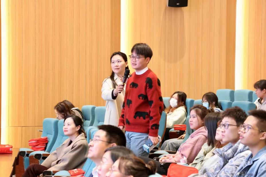 邱铭达讲师从三张名人照片入手,引导学生们参与讨论经济与金融的共生共荣关系,从如何使用金钱、个人征信及其影响、投资及风险管理、金融诈骗及补救措施、基础金融知识等多个方面与在场师生展开讨论。汤漪总结发言,强调了本次活动的重要意义,表达了希望帮助在校学生进一步适应数字时代的愿景。