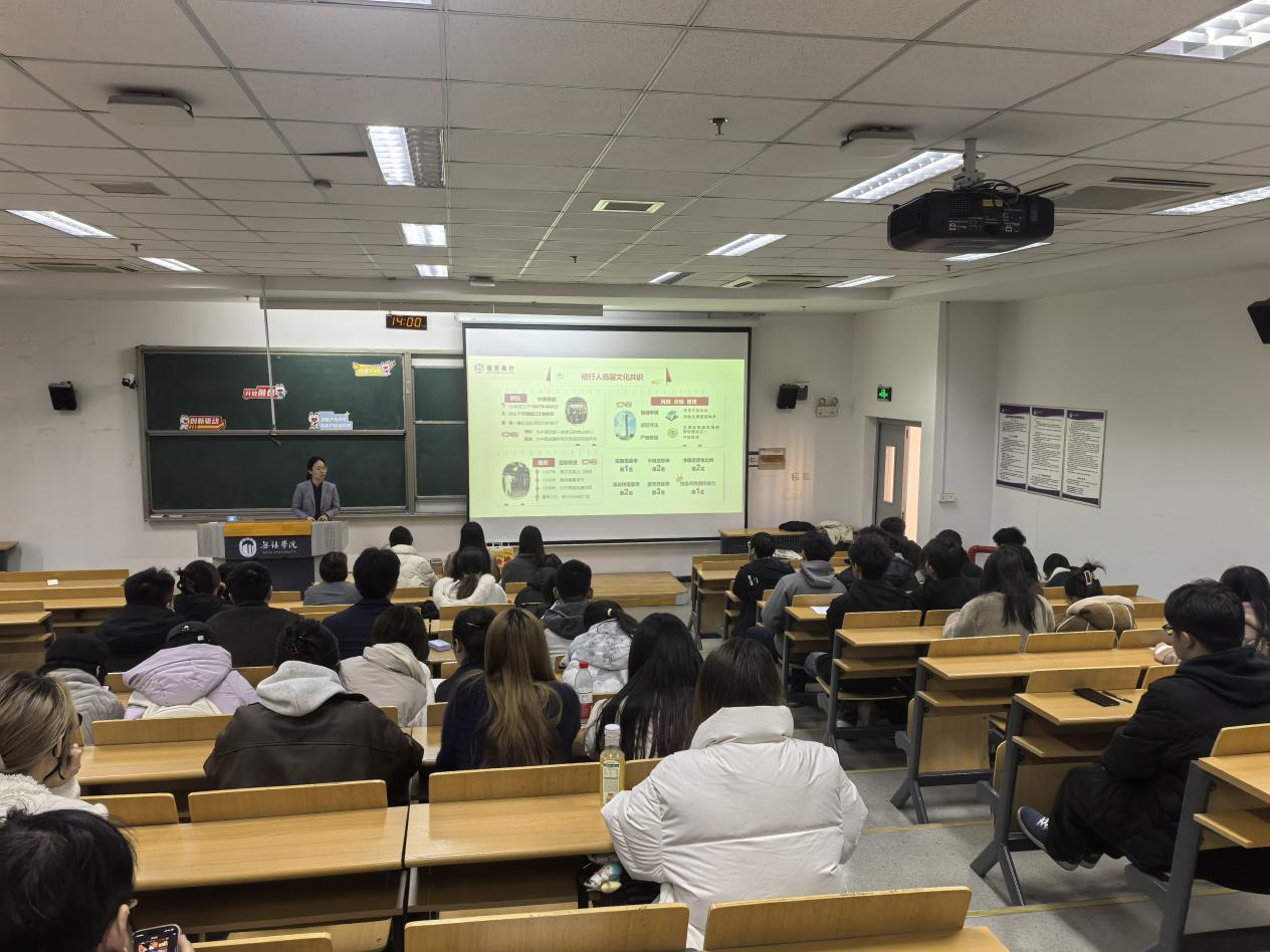 为助力同学们精准把握金融行业就业机遇,提供优质求职机会,11月28日下午,数字经济与管理学院、应急管理学院联合招商银行无锡分行,在尚美楼举办2026届校园招聘宣讲会。本次活动由招行无锡分行人力资源代表现场宣讲,2026届学子参与。