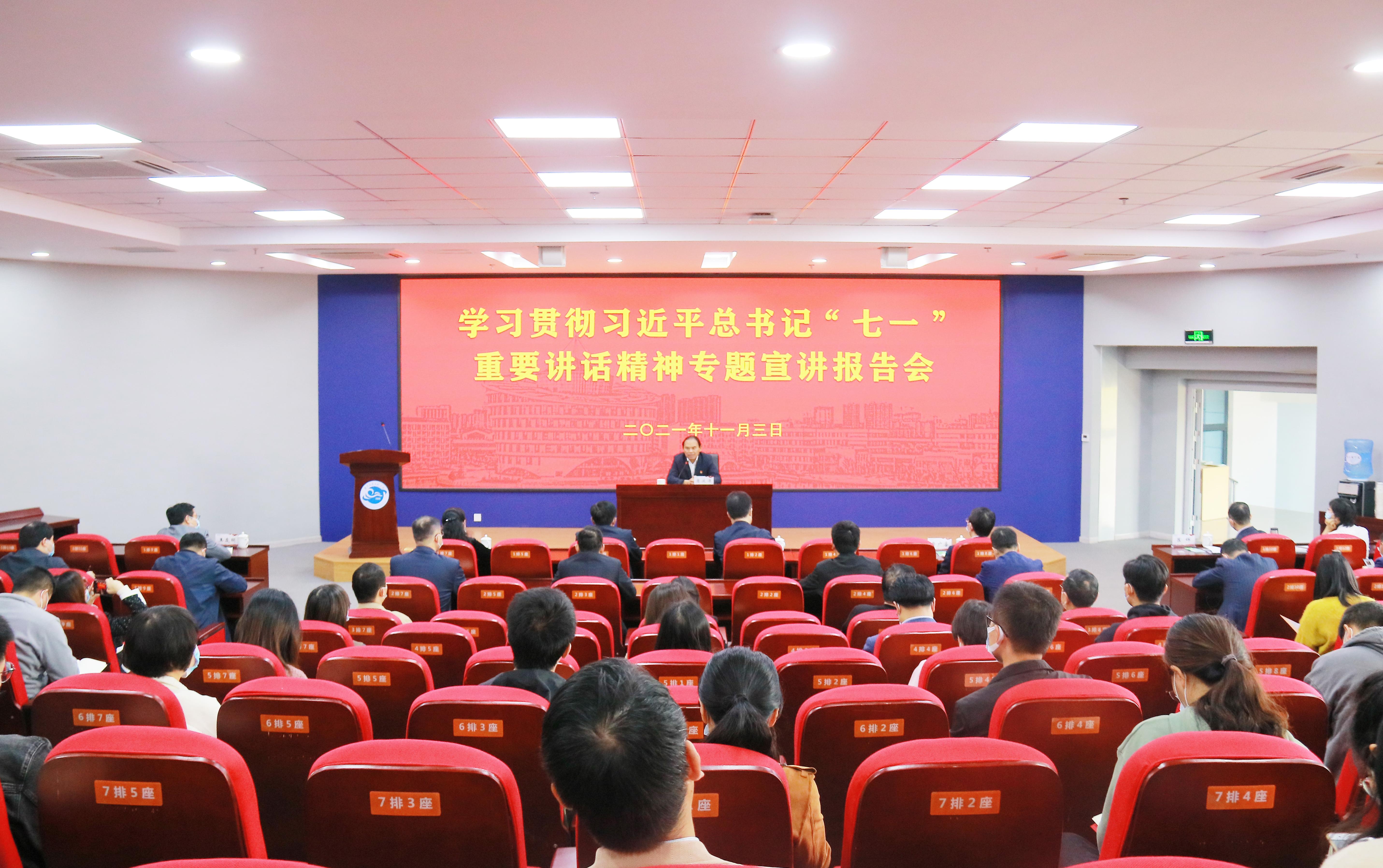 为进一步深化党史学习教育,汲取党史智慧,凝聚前进力量,11月3日上午,特邀无锡市委宣传部副部长、二级巡视员商波涛来校作关于学习贯彻习近平总书记“七一”重要讲话精神的宣讲报告。宣讲会由校党委副书记匡辉主持,全体校领导、科级以上干部、马院全体教师、各党支部书记和新生辅导员聆听了宣讲。