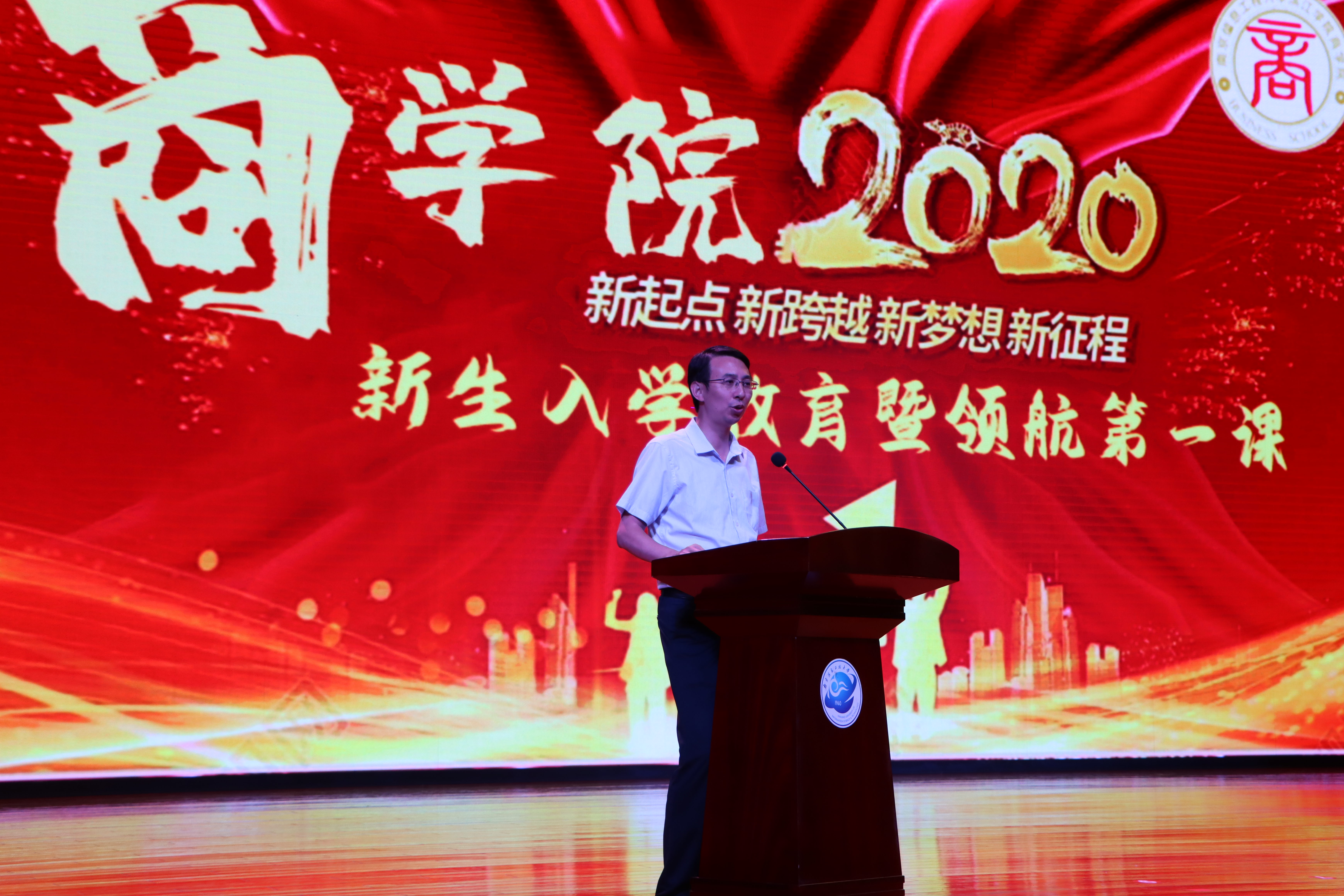 9月23日晚,商学院2020级新生入学教育暨领航第一课在滨江大礼堂二楼顺利举行。滨江学院院长曹广喜,商学院党总支书记孙振,商学院院长陈理飞、分团委书记李诗雅、各系系主任、全体辅导员及新生参加,大会由商学院院长陈理飞主持。