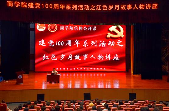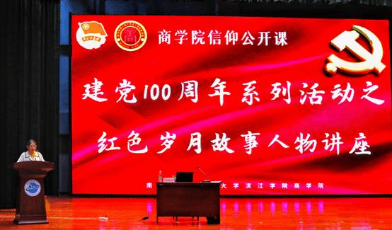 重温红色记忆,弘扬爱国精神。2021年5月10日,商学院于滨江大礼堂二楼举办了建党100周年系列活动之红色岁月故事人物讲座。本次讲座特邀南开大学博士、中共国家税务总局党校胡世文老师进行主讲,商学院辅导员李诗雅老师主持本次讲座。