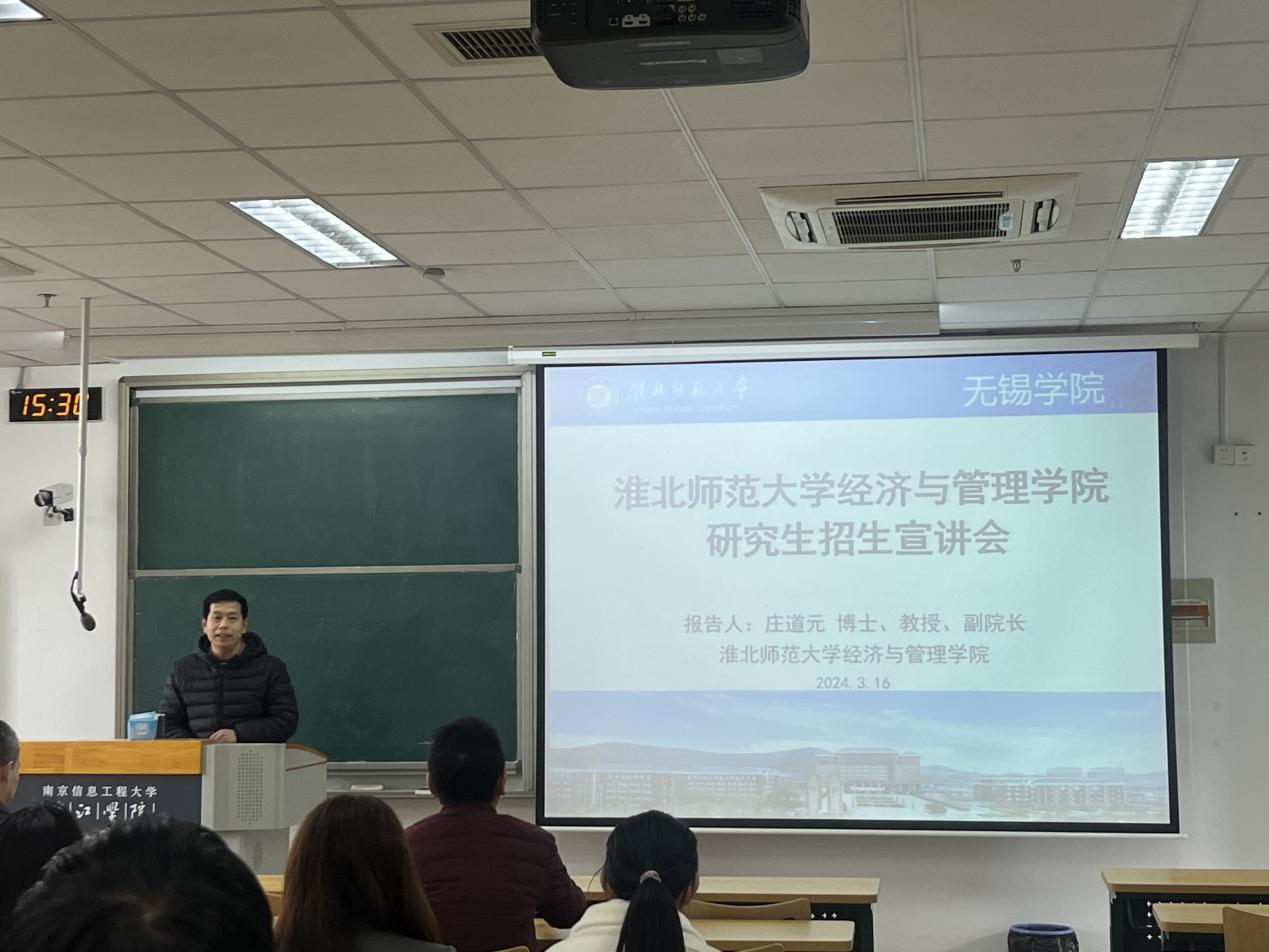 为加强院际间交流,服务学生考研需要,搭建考生与报考学校的沟通桥梁,3月16日下午,数字经济与管理学院在尚美楼310开展研究生招生宣讲会。本次会议邀请淮北师范大学经济与管理学院庄道元教授为主讲人,数字经济与管理学院院长刘军出席会议。