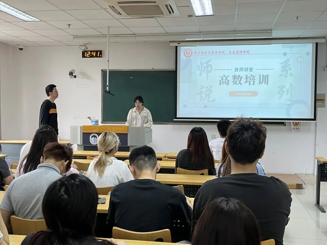 “良师讲堂”强认知,精准聚力促成长。学风建设要统筹推进,精准发力才见效果。学院立足商科专业特色,明确“提升教学质量、强化科研赋能、培育品德素养”核心目标,让教风与学风相互促进、深度融合。教学建设上,学院聚焦“课程提质+学情攻坚”,一方面优化8门核心课程设计,开展10余次教学观摩比赛,把教学内容打扎实,一方面通过“课前签到+课中随机点名+课后考勤公示”三级管理,保障教学效果不打折扣;品牌打造上,策划“高数小课堂”“阅经典–悦经管”读书沙龙、“文献共读会”等系列活动,开展“良师讲堂”课程8期,聚焦理想信念、学业规划与成长责任,为青年学生大学之路奠定坚实基调。
