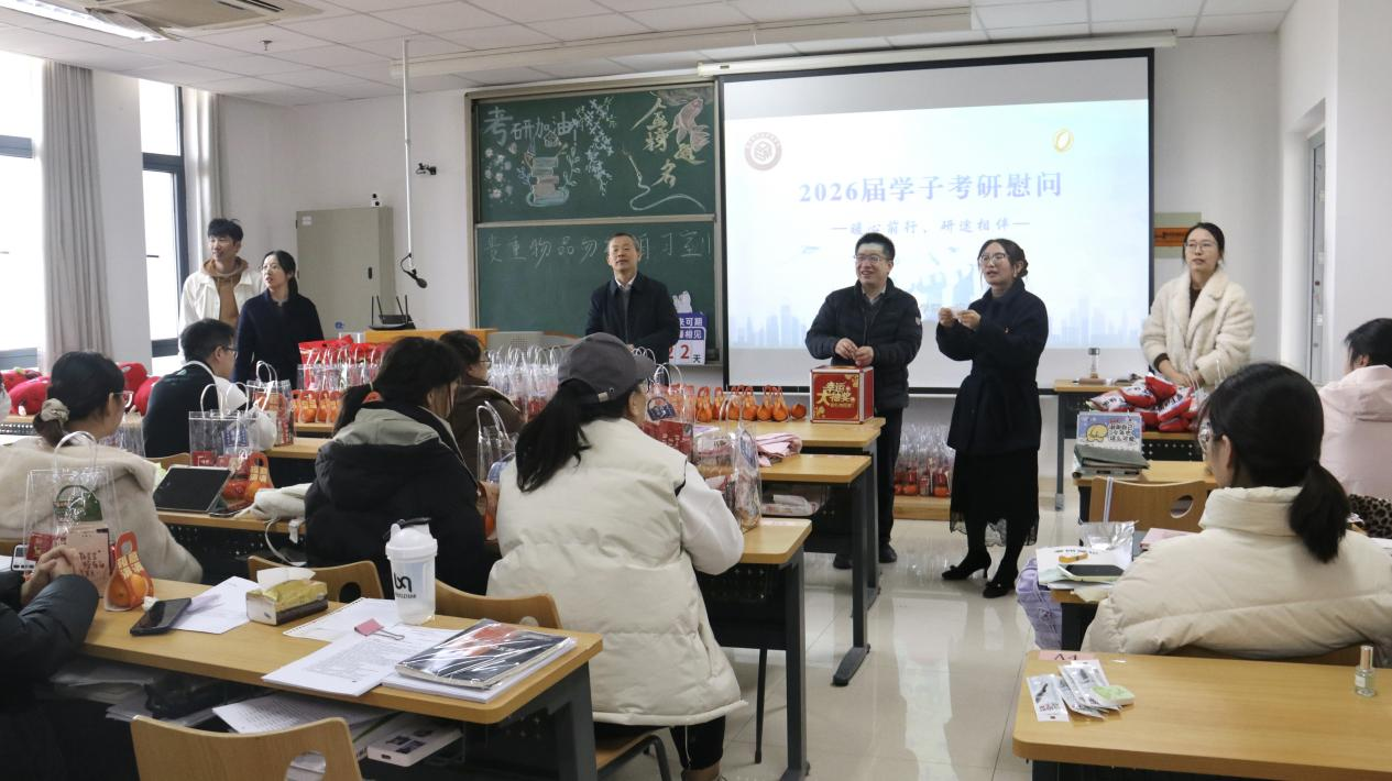 为助力我院2026届考研学子坚定备考信心,提振备考信心,鼓舞考研士气,11月28日下午,数字经济与管理学院、应急管理学院在尚美楼考研自习室开展“暖心前行,‘研’途相伴”考研慰问活动。副校长徐军海、院长刘军、党总支副书记李诗雅、副院长王子敏、学办副主任卢艳及毕业班辅导员共同参与此次活动。现场氛围温馨务实,有效为我院考研学子注入了“强心剂”。