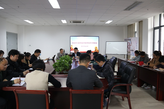 匡辉以十九届六中全会审议通过的《中共中央关于党的百年奋斗重大成就和历史经验的决议》中序言开篇,简要回顾了党的百年奋斗重大成就和历史经验。他和大家一起,交流了学习六中全会公报、习近平总书记对大会做的决议(讨论稿)》向全会作的说明、会议审议通过的决议、新华社发表的六中全会侧记等重要文献。中国共产党是一个高度注重总结历史经验的政党,面对建党百年的重大时刻和“两个一百年”奋斗目标历史交汇的关键节点,我们每一个党员要及时跟进学,用党的重大成就和历史经验来鼓舞斗志、明确方向、凝聚力量、坚定信心,不断开拓中华民族伟大复兴的光明之路。匡辉强调,大学肩负着为党育人、为国育才的使命,在“十四五”发展新征程上,我们要不断坚持和发扬党中央的权威和统一领导的历史经验,维护好以习近平同志为核心的党中央的坚强领导,把新时代高等教育的伟大事业不断推向前进。全院上下要深刻把握十九届六中全会所提出的“十个坚持”,不断总结时代变革所积累的新鲜经验,为学校学科、教学建设添砖加瓦,同时切实肩负起筑牢思想根基、凝聚师生人心、推动高质量发展的重要职责,为党的事业培养接续奋斗、堪当重任的接班人。