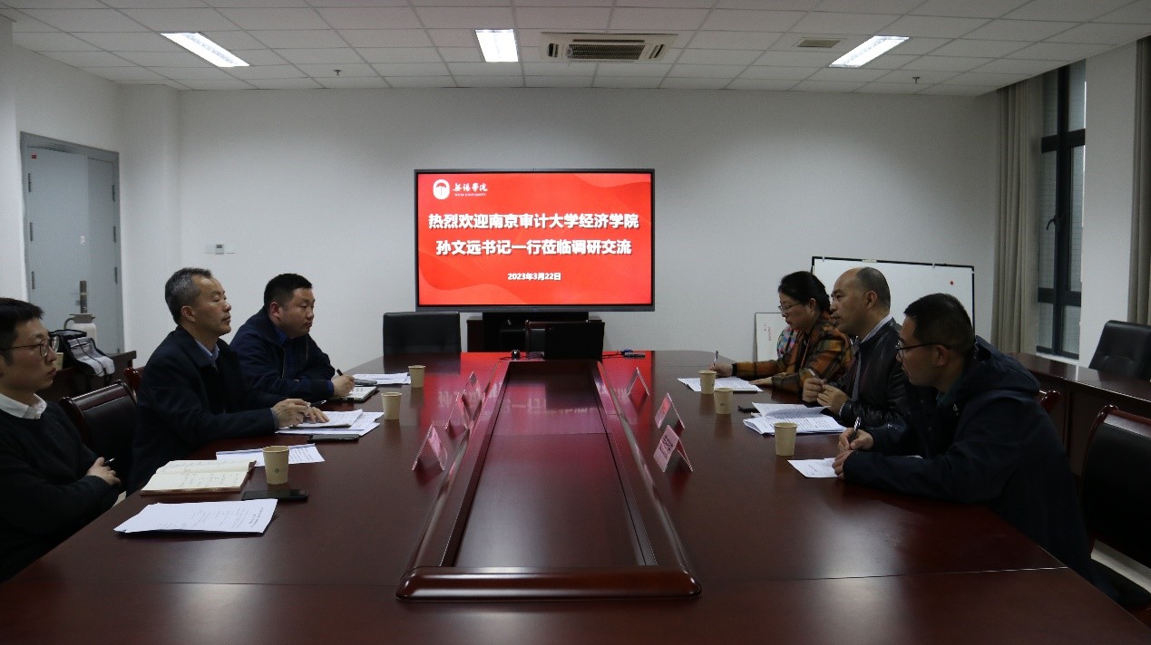 3月22日下午,南京审计大学经济学院党委书记孙文远一行来校调研交流。数字经济与管理学院院长刘军,院长助理孙宁、刘震参加了会议,会议由刘军主持。
