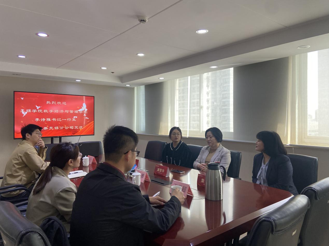 为全面落实国家对高校毕业生就业创业工作的决策部署,拓宽毕业生的就业渠道,4月13日,数字经济与管理学院党总支副书记李诗雅带队前往国联证券无锡分公司开展访企拓岗活动,国联证券无锡分公司总经理浦慧华、无锡分公司人力资源负责人袁征、校园招聘负责人曹乐乐出席交流活动。