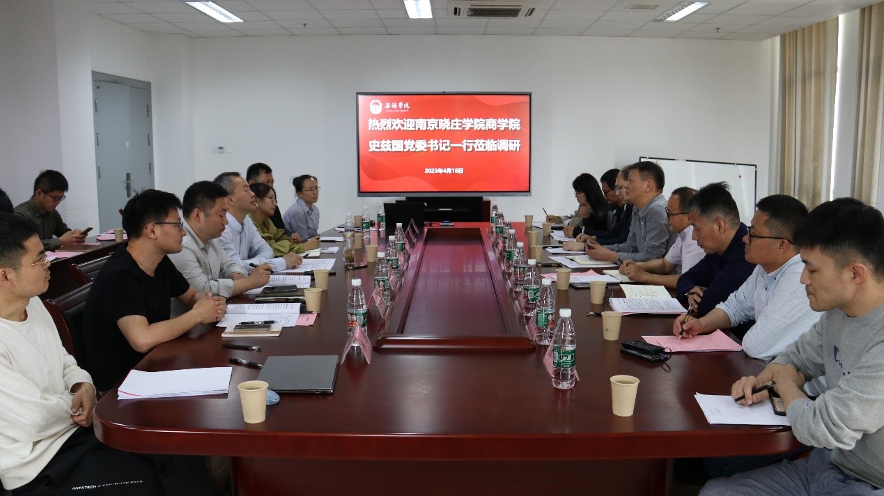 4月18日下午,南京晓庄学院商学院党委书记史兹国一行来我校调研交流。数字经济与管理学院院长刘军、党总支副书记李诗雅、院长助理孙宁、金融与贸易系系主任高志文、副主任方和远,部分专业教师和辅导员参加了本次调研活动。