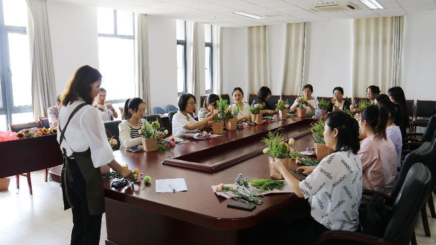 这项活动旨在强调创意和团队协作,同时向教师们致以最诚挚的节日祝福。活动的主题是“教育之花,传承之美”,突出了教师在培养学生成长中所发挥的关键作用。在活动中,教职工们在插花师的指导以及互相协作下,使用各类花卉和绿叶材料,创作出属于自己独特的插花作品。活动现场充满了欢声笑语和创意的火花。教师们将自己的艺术天赋和创造力融入到插花作品中,每一份作品都反映了他们对教育的热爱和对学生的关怀。活动结束后,教师们相互交流插花心得,体现了如同教育发现美、感悟美和创造美的过程。