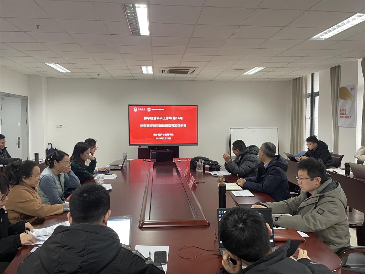 2月22日下午,“数字经管科研工作坊”第14期顺利召开。会议特邀南京信息工程大学张三峰教授来校指导项目申报,数字经济与管理学院院长刘军及全体青年教师参加会议。会议由刘军主持。