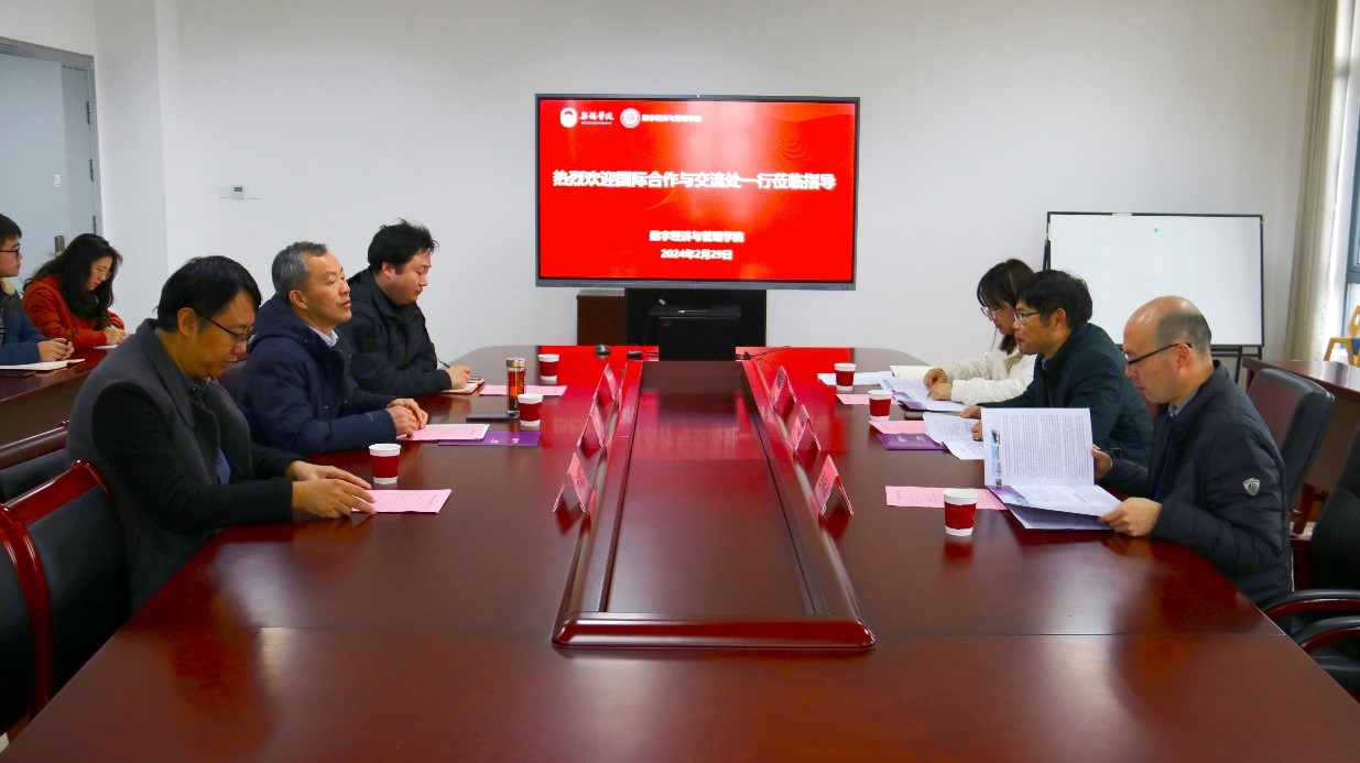 2月29日,江苏省外国专家工作室建设交流会在尚美楼504会议室举行。本次获批的数字经济与管理学院外国专家工作室为我校第二个外专工作室,工作室由韩国籍教师卢福东担任领衔专家,成员来自澳大利亚、新加坡、马来西亚和巴基斯坦等国家。国际合作与交流处处长王勇、数字经济与管理学院院长刘军等参加会议,会议由刘军主持。