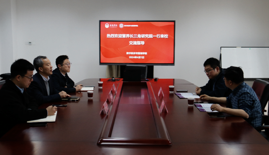 4月1日,慧界长三角研究院院长鲍涵、华东师范大学通信与电子工程学院专任研究员芮赟一行来我校数字经济与管理学院开展调研交流。数字经济与管理学院院长刘军,院长助理刘震及教师代表参加会议。会议由刘军主持。