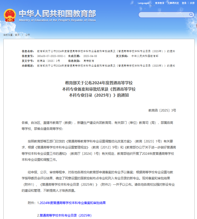 近日,教育部公布了2024年度普通高等学校本科专业备案和审批结果,我校数字经济专业成功获批。这标志着我校专业体系的进一步完善,也为学校更好契合无锡市“465”现代产业集群与“5+X”未来产业布局,服务国家和地方数字经济发展战略注入了新动能。