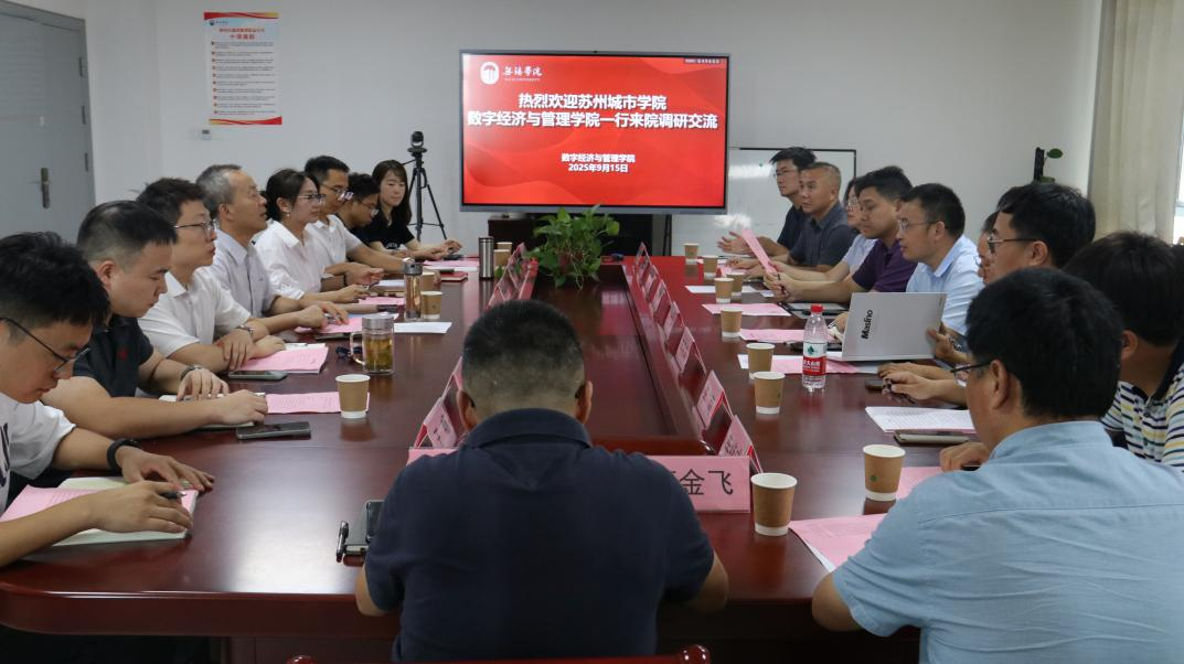 王文华对数字经济与管理学院取得的各项成绩表示祝贺,他介绍了苏州城市学院数字经济与管理学院的办学历程、基层教学组织建设、实验室建设等相关情况。随后,双方围绕本科教学工作合格评估、实验室建设、科研管理等共同关切的问题进行了深入探讨。