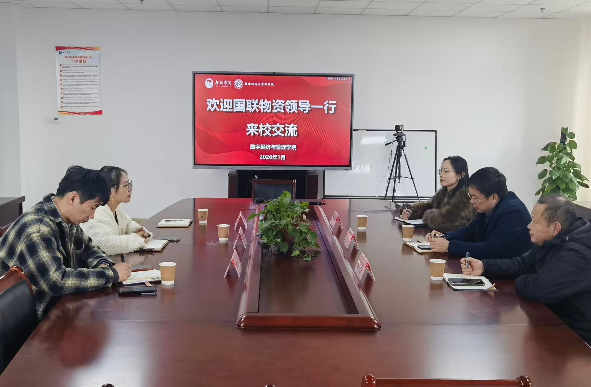 1月7日下午,国联物资投资有限公司总经理秦顺达一行来数字经济与管理学院调研交流。学院党总支副书记李诗雅,相关专业辅导员参加座谈交流。