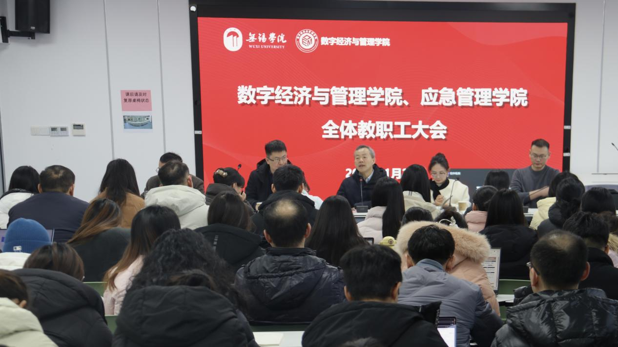 1月23日上午,数字经济与管理学院(应急管理学院)在尚美楼111召开全体教职工大会,全面总结2025年度各项工作成效,深入分析当前高等教育发展形势,系统部署2026年重点任务。学院院长刘军、党总支副书记李诗雅等院领导班子成员及全体教职工参加会议。