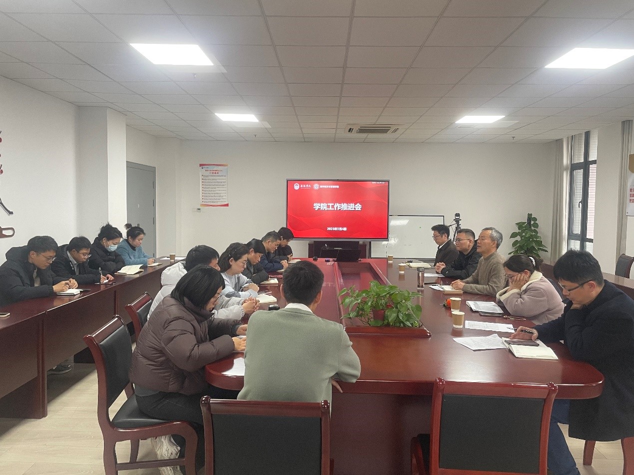 为进一步明确工作方向、压实工作责任,确保学院各项重点工作有序推进、落地见效,2026年3月4日下午,数字经济与管理学院(应急管理学院)在尚美楼504会议室召开学院工作推进会。学院院长刘军、党总支副书记李诗雅等领导班子成员及各基层教学组织负责人参加会议。