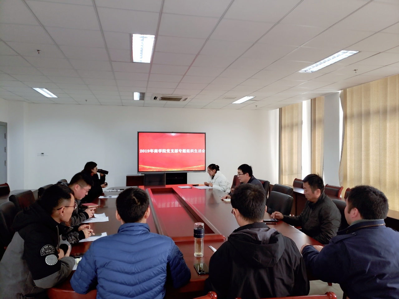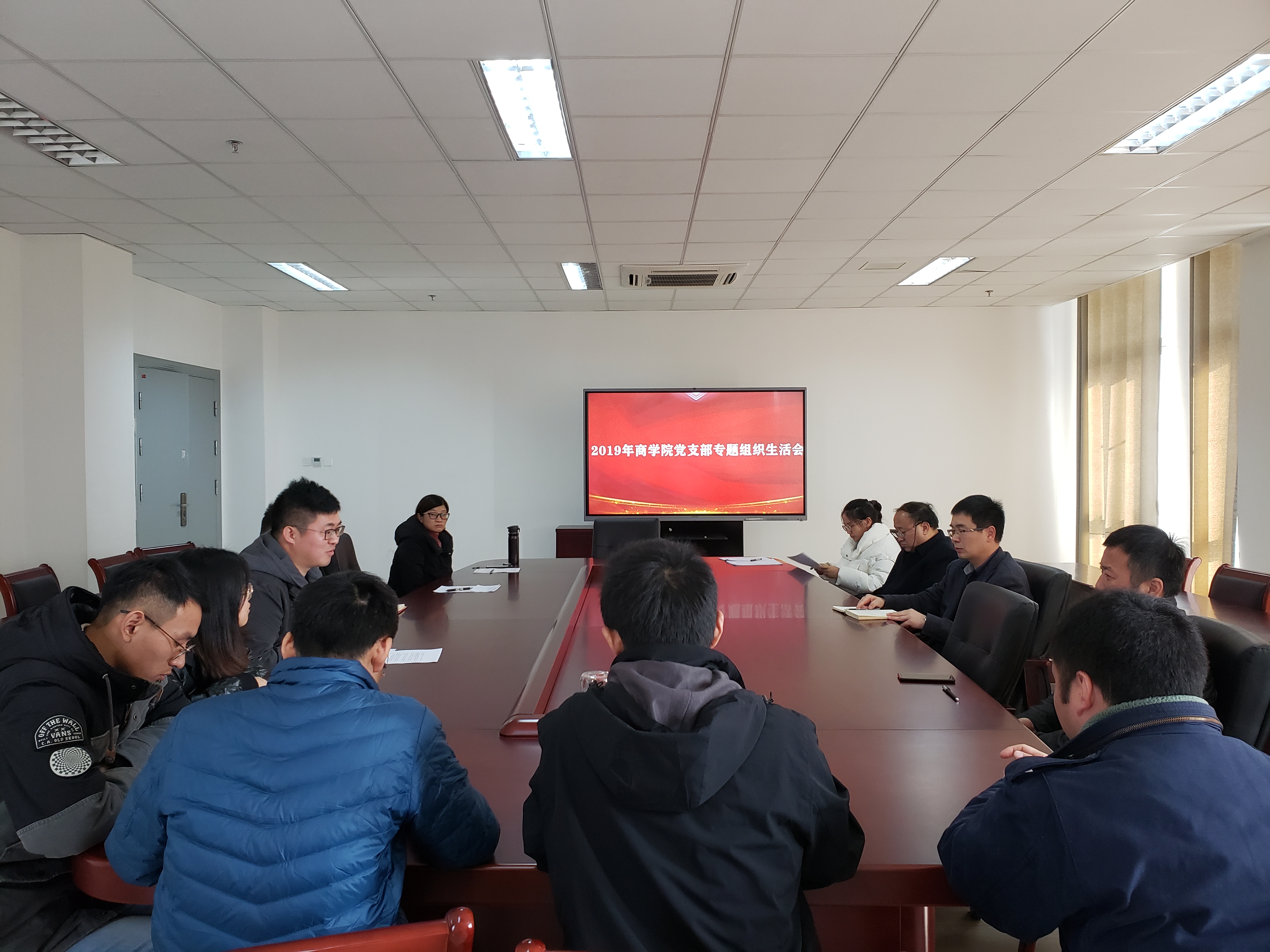 2019年12月6日,商学院党支部召开专题组织生活会,会议由党支部书记李诗雅主持,全体成员发言,最后由党委书记孙振致总结词。
