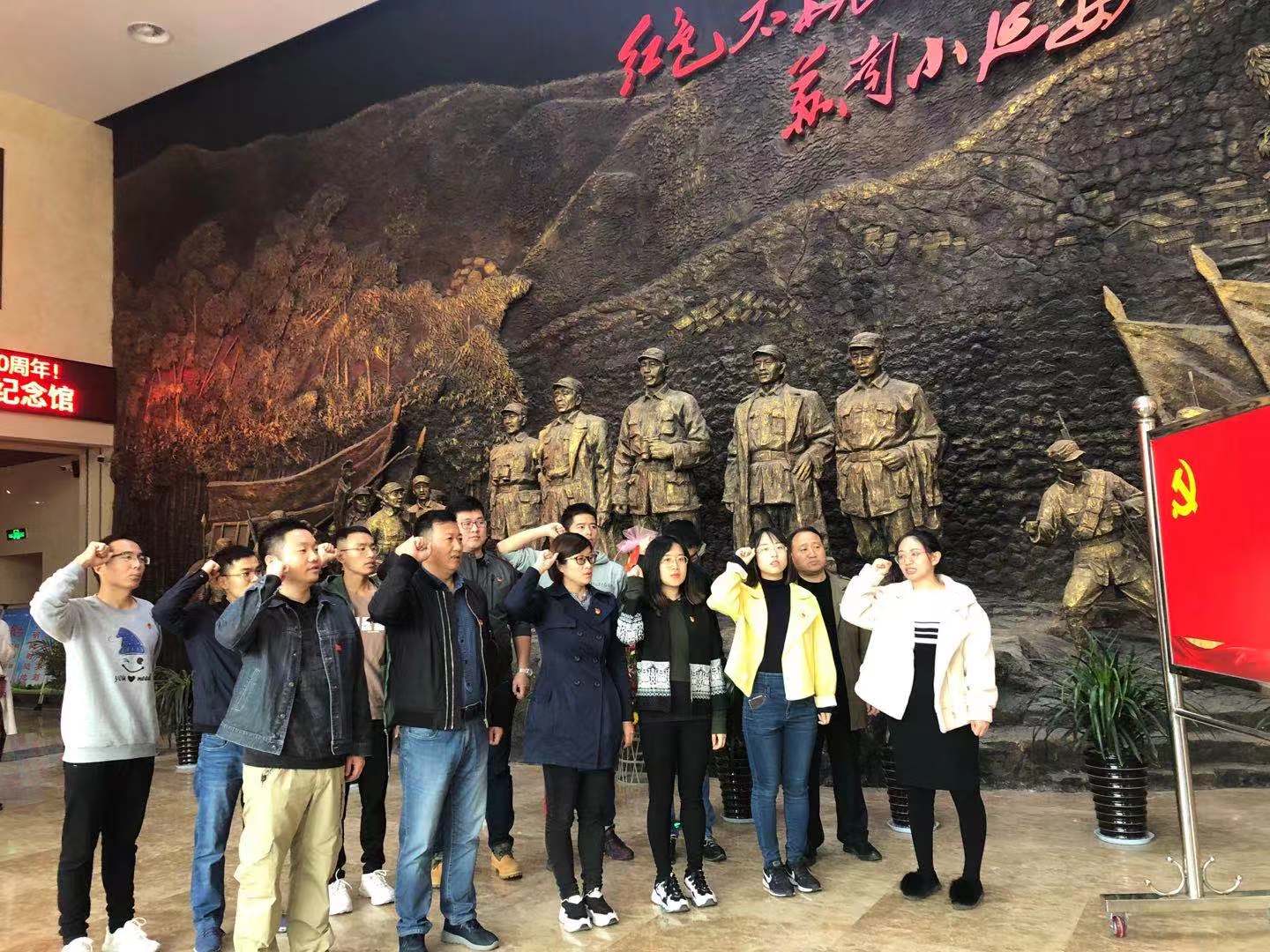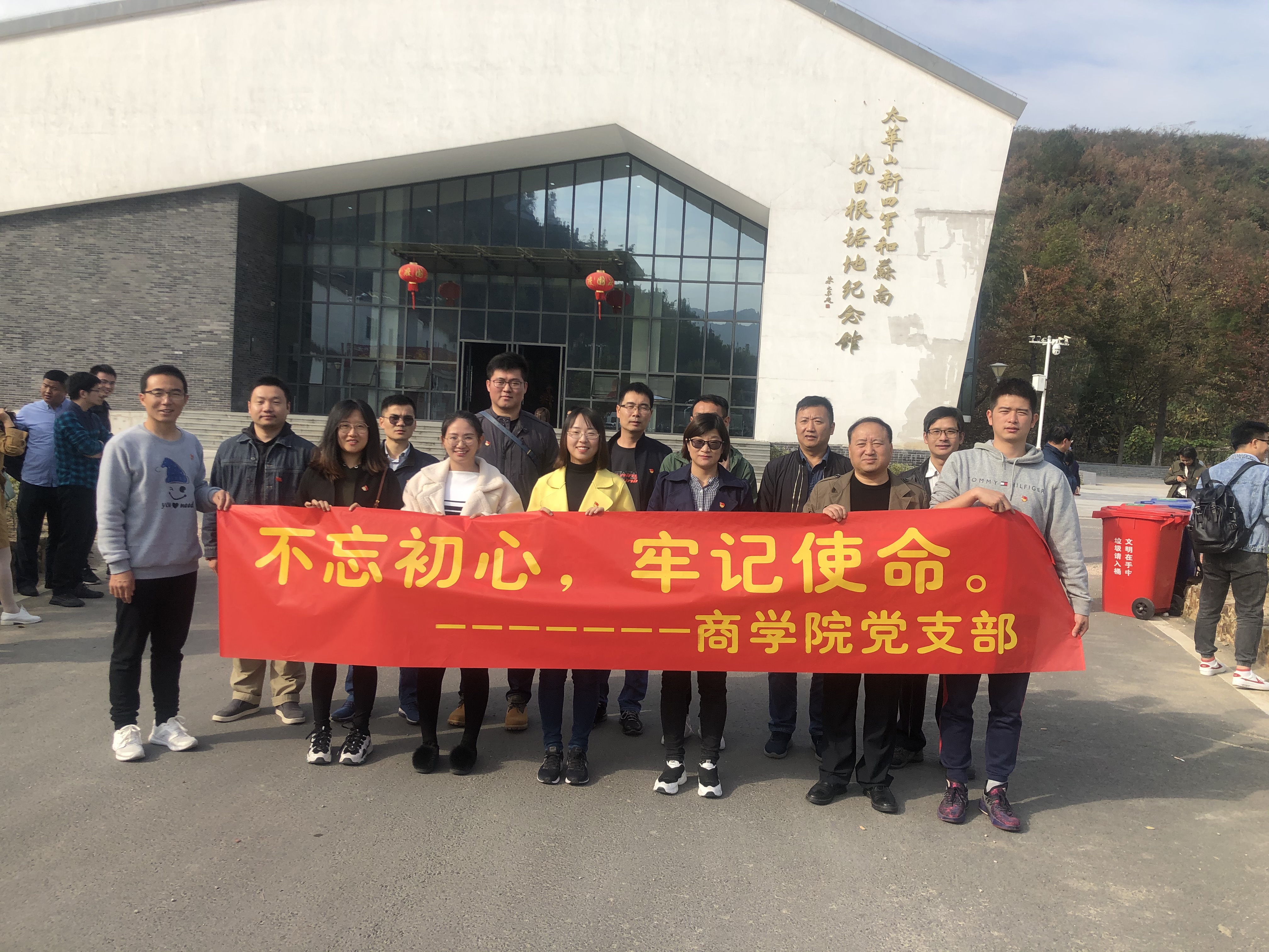 2019年11月18日,商学院党支部组织全体党员参观太华山新四军和苏南抗日根据地纪念馆,缅怀革命先烈,回顾革命历史,全体党员在党旗面前庄严宣誓,不忘初心、牢记使命。
