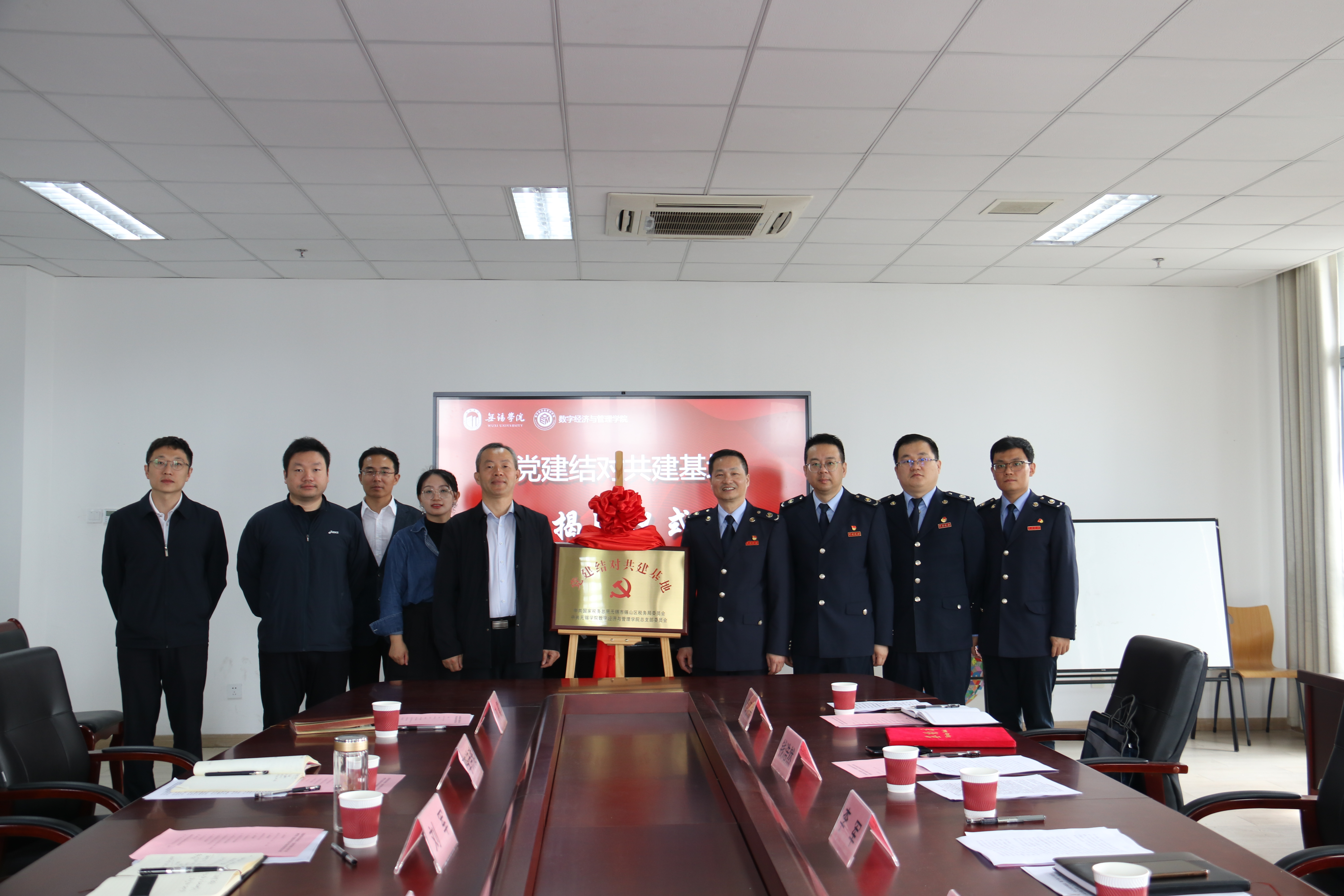党总支副书记李诗雅与锡山区税务局副局长钱浩然签署战略合作协议,院长刘军与锡山区税务局局长李军共同为“党建结对共建基地”揭牌。